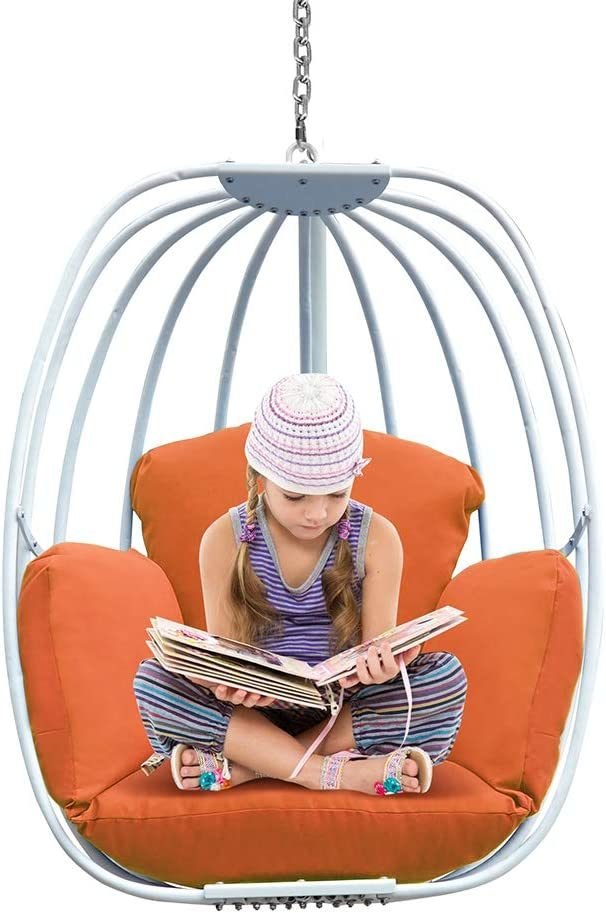 5.BIG SPACE SINGLE SEAT: Dimensions: 47.2 H x 26 W x 33.5 D inches. Big space swing seat with comfortable cushion and pillow are ease to remove and clean. Weight Limit: 365 lbs, suitable for most people.